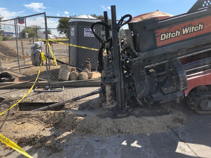 When this photo was taken last week, there was a crew trenching and boring conduit for the high voltage distribution feed running along a nearby street — a lot of work to support four charging spaces (at the moment).