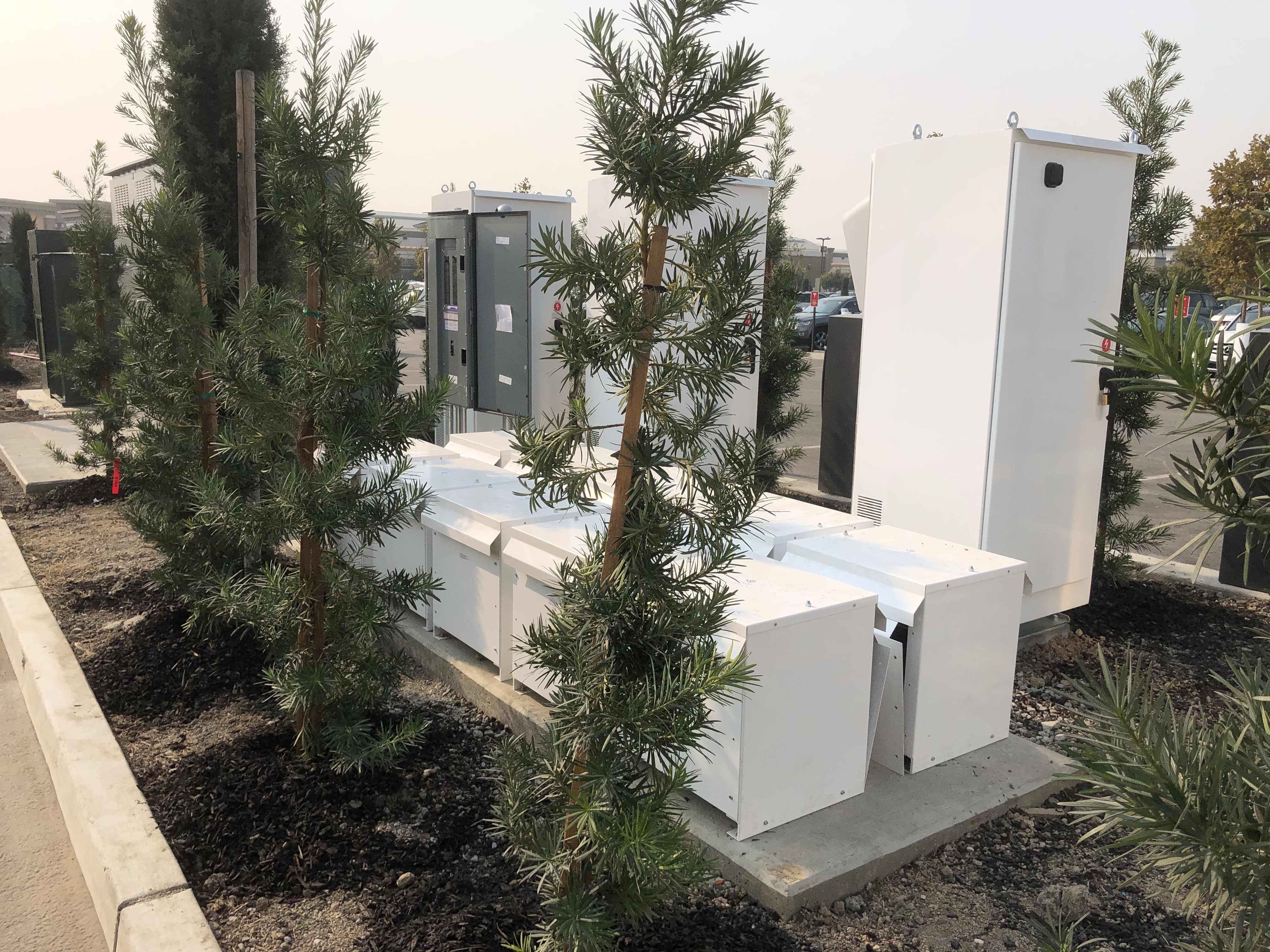 ‘IMG_9179’ Published November 13, 2018 at 4032 × 3024 in Tesla, Electrify America adjacent DC charging sites near completion in Livermore Voltage buck transformers for each charger cabinet ‹ Back