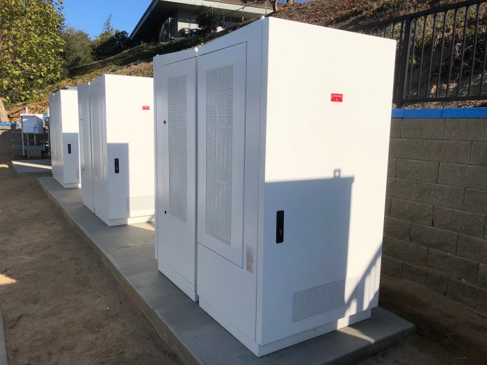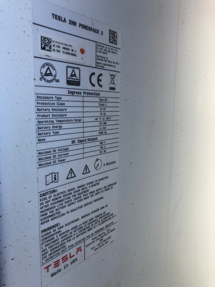 The four cabinet Tesla Powerpack storage system.