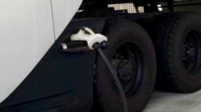 On these occasions, Tesla employees have commonly asked onlookers not to photograph the adapter arrangement that allows the truck to charge at today’s existing Superchargers. In the future, the trucks will have their own dedicated Megacharger stations.