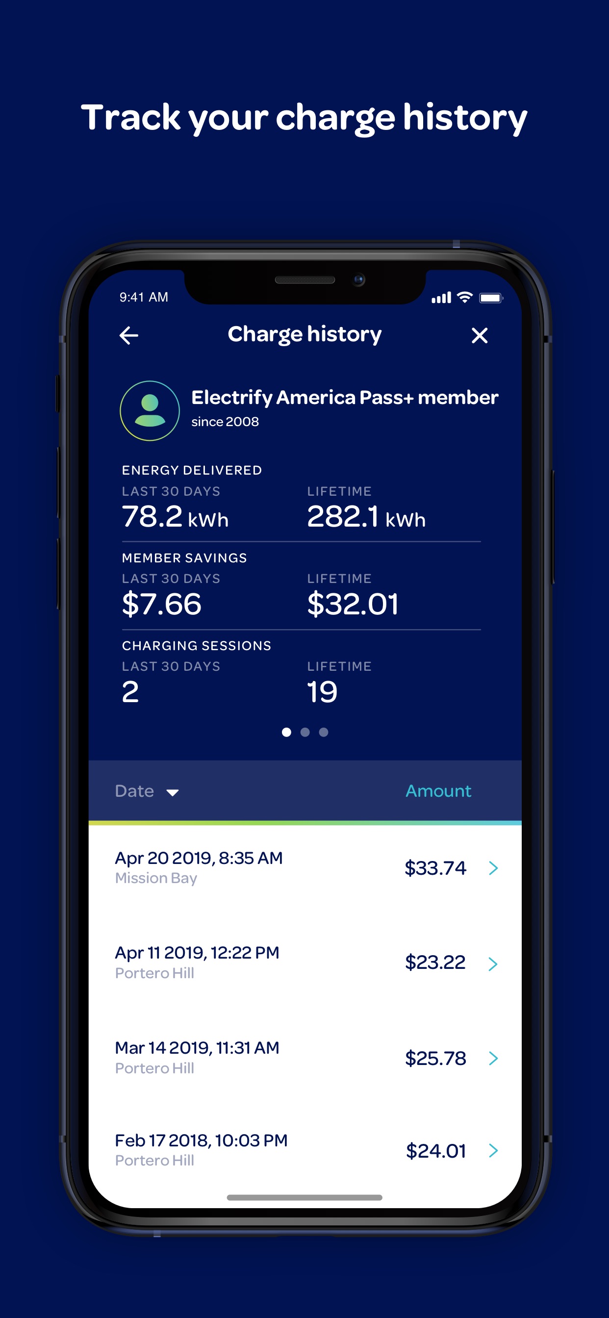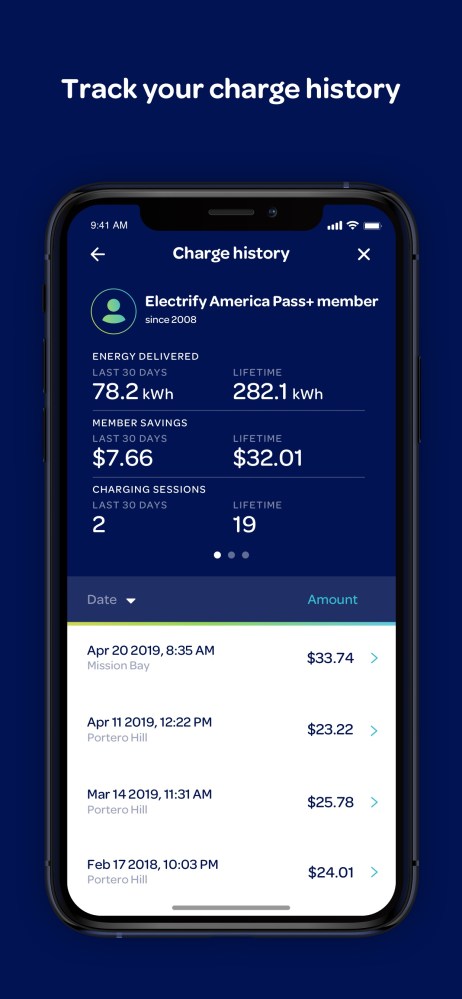 ‘600-47.14_Charge-History_appstore_2688’ Published May 5, 2019 at 1242 × 2688 in Electrify America shows new mobile app, reveals new pricing plans ‹ Back