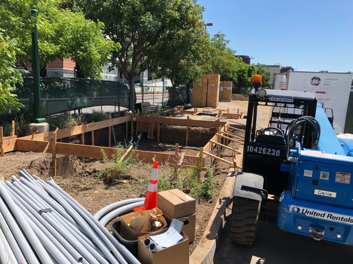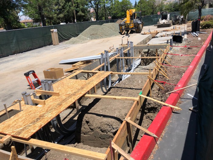 This area is being prepared to be the large concrete pad where the charging cabinets will be installed. After installation is complete, the power cabinet pad is usually surrounded by fencing to hide the equipment from view.