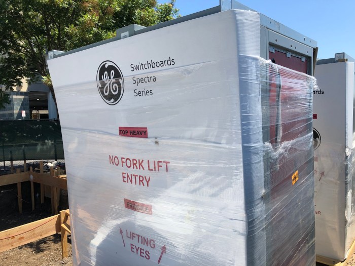 This is a joint Tesla and Electrify America installation similar in some ways to the Premium Outlet mall in Livermore but with fewer Electrify America chargers. Tesla is getting eleven neighborhood-style 72 kW Supercharger dispensers on one side of the parking lot and nine on the other side. The two sides are separated by a mall entrance road. Adjacent to the side with nine Tesla spaces are four 150 kW Electrify America dispensers supplied by BTC Power.
