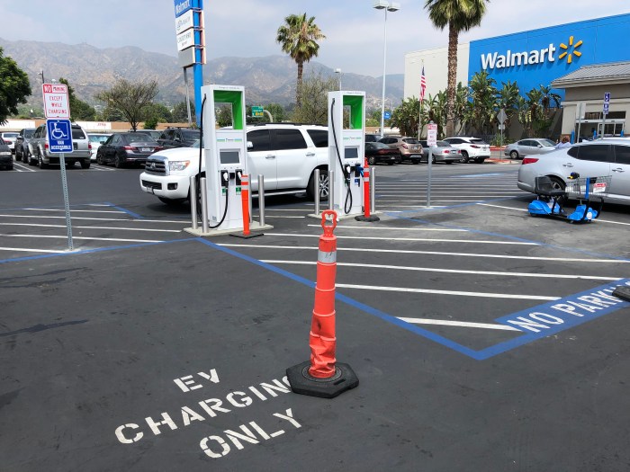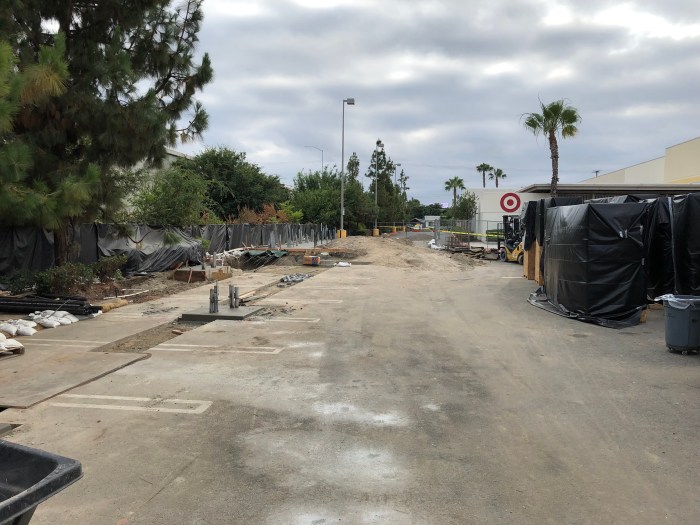 This looks like an excellent installation layout along the perimeter of the parking lot along the adjacent highway sound barrier next to the Target store. This highway site looks as if it will have eight charging spaces in a row with two located separately for better handicapped accessibility.