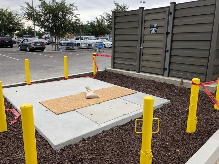 This is another metro site with three BTC Power 150 kW charging dispensers along with a 240V AC charging stand (visible in front the car in the photo below). Everything looks ready to go but the utility hasn’t installed the transformer yet.